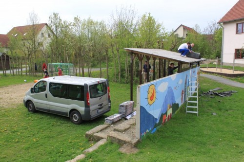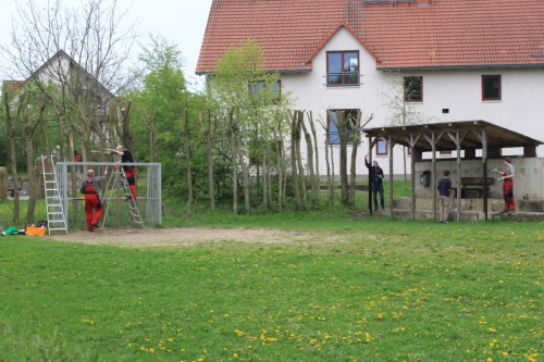 Geschäftig ging es am Sonnabend dem 4. Mai auf dem Kinderdorfgelände zu. Mitarbeiter der Dresdener Firma C.E.P. -Anlagenautomatisierung brachten bei einem intensiven "Frühjahrsputz" gemeinsam mit Kindern aus dem Kinderdorf unsere Außenanlagen in einen frisch renovierten Zustand. Nun funktioniert der Drainageabfluss wieder tadellos, der dafür sorgt, dass das feuchte Gelände an der Pferdekoppel entwässert wird. Sämtliche Holzhütten und Bänke im Außengelände erhielten einen neuen Anstrich. Die alten Fundamente der Schaukel mussten mühsam aus dem Boden geholt werden, damit eine neue Schaukel errichtet werden kann. Der Unterstand am Ballplatz erhielt einen neue Dachpappdeckung und die defekten Fußballtore wurden mit Netzen versehen. Eine Attraktion für die Kinder war der Bagger, der den großen Kompostsammelplatz umschichtete, damit sich dieser im Laufe der Zeit in guten Humus verwandelt. Schon am 14. April hatte ein Gruppe von Mitarbeitern mit fachlicher und technischer Unterstützung einer Gartenbaufirma die Weiden auf unserem Sportplatz verschnitten. eine Menge Arbeit, die wir allein nicht geschafft hätten. Am 4. Mai nun gab es nach getaner Arbeit noch ein leckeres gemeinsames Essen vom Grill. Die Mitarbeiterinnen von C.E.P. hatten sich große Mühe gemacht, um ganz viele appetitliche Sachen auf den Tisch zu bringen. Doch damit nicht genug: Die fleißigen Unterstützer von C.E.P. hatten sogar noch Spiel- und Sportgeräte mitgebracht und Spiele für die Kinder parat. Ein rundum gelungener Einsatz, für den wir uns herzlich bei der Geschäftsführung und allen Mitarbeitern C.E.P. bedanken.