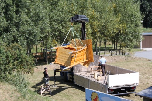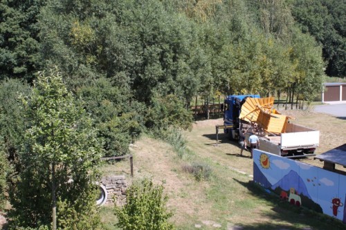 Die Witterung hatte unserem bisherigen Kletterturm heftig zugesetzt, so dass wir ihn aus Sicherheitsgründen abbauen mussten. Nun hat die SAPS (Soziale Arbeitsprojekte Sonnenstein Pirna gGmbH) einen neuen Kletterturm aus Robinienholz für uns gebaut, der durch seine "gewachsenen" Formen sehr reizvoll aussieht und viele Spielmöglichkeiten bietet. Am 15. August wurde er angeliefert und am 16. August schon aufgestellt. Die Kinder haben den Turm sogleich in Besitz genommen und die vielfältigen Möglichkeiten (Kletterleiter, Kletterstange, Sandaufzug) ausprobiert.