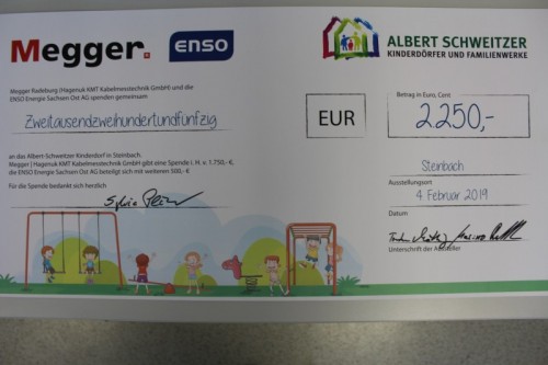 Spendenübergabe der Firmen ENSO und Megger (Hagenuk)